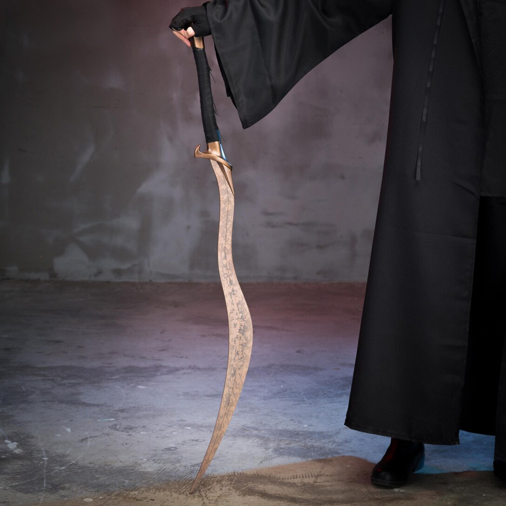 Diese lebensgroße, detailreiche Nachbildung fängt die bedrohliche Krümmung, das kunstvolle Griffdesign und die kampferprobte Ästhetik der Ingame-Waffe perfekt ein. Ob du Sammler, Cosplayer oder eingefleischter Elden Ring-Fan bist – dieses atemberaubende Schwert ist ein absolutes Must-have für deine Sammlung.