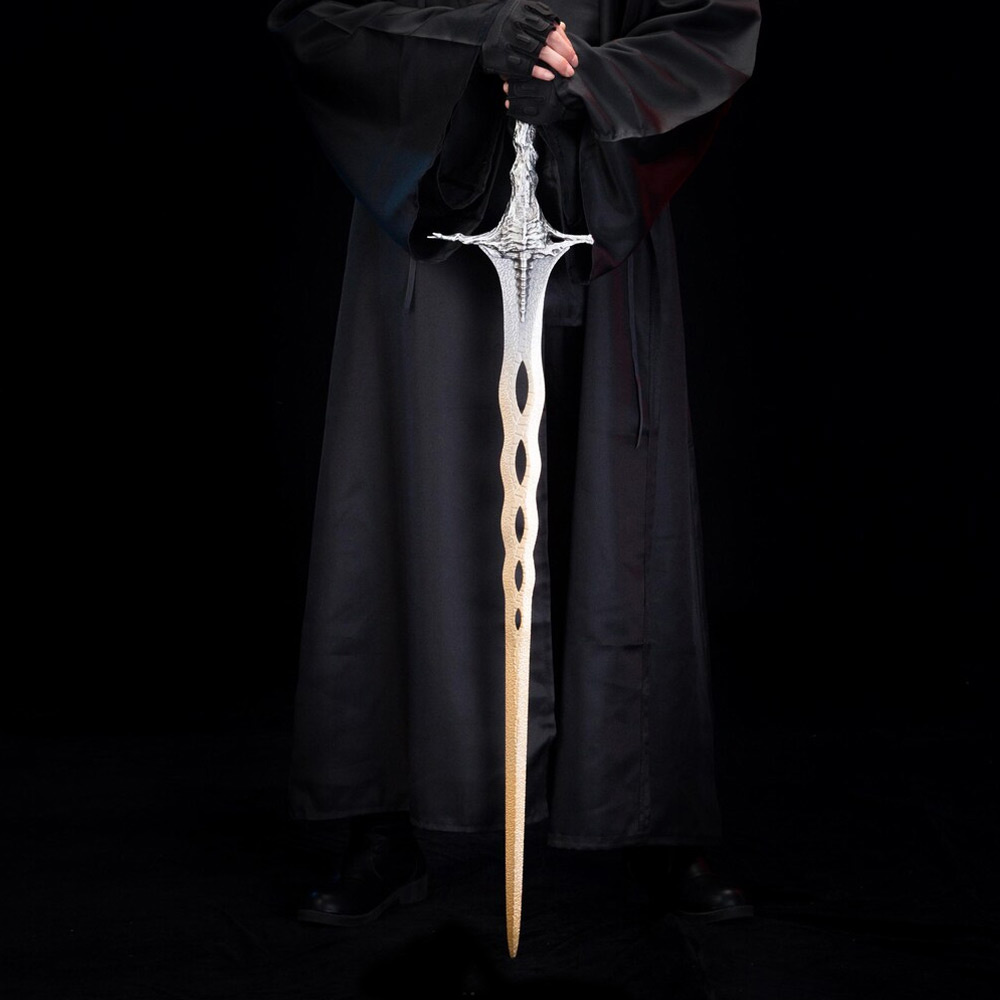 This full-size replica has been expertly crafted to match the iconic golden Sacred Relic Sword from Elden Ring. Made from durable stainless steel and zinc alloy, it captures every intricate detail, ensuring a stunning display piece fit for any gaming shrine or cosplay event.