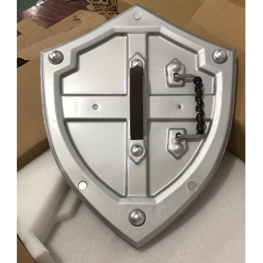 Fabriqué avec une attention exceptionnelle aux détails, notre Bouclier d'Hylia Deluxe est en aluminium de haute qualité, garantissant qu'il est à la fois léger et durable. Avec des dimensions d'environ 55 x 46 cm, ce bouclier est parfait pour le cosplay ou l'exposition, reproduisant tous les détails du jeu, y compris les emblèmes de la Triforce et du blason d'Hylia. La sangle en cuir végétalien offre confort et authenticité, tandis que la poignée en acier solide assure une prise en main ferme et fiable, comme celle de Link.