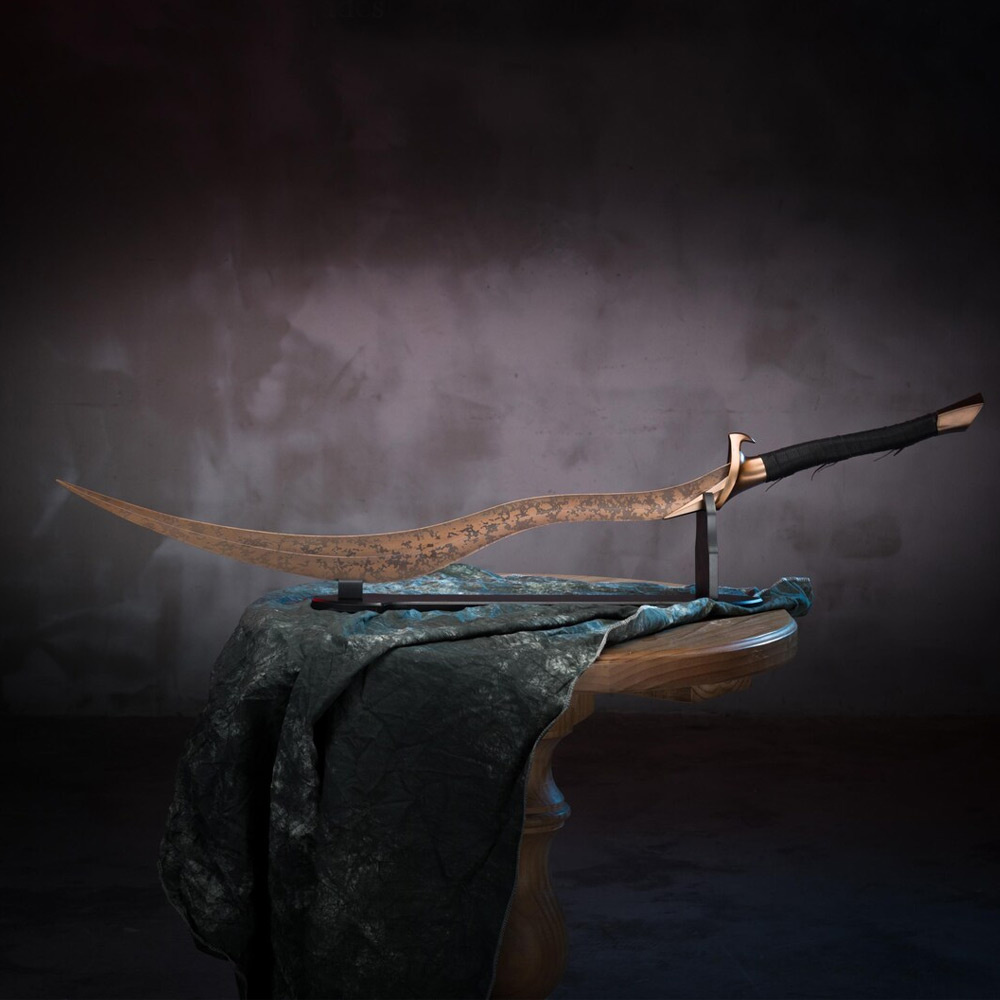 Stap in de mystieke wereld van Elden Ring met deze gedetailleerde replica van Bloodhound’s Fang, het legendarische gebogen grootzwaard dat wordt gebruikt door de geheimzinnige Bloodhound Knights. Bekend om hun razendsnelle en meedogenloze aanvallen, vertrouwen deze krijgers op hun scherpe, gebogen kling om vijanden met ongeëvenaarde precisie te verslaan.